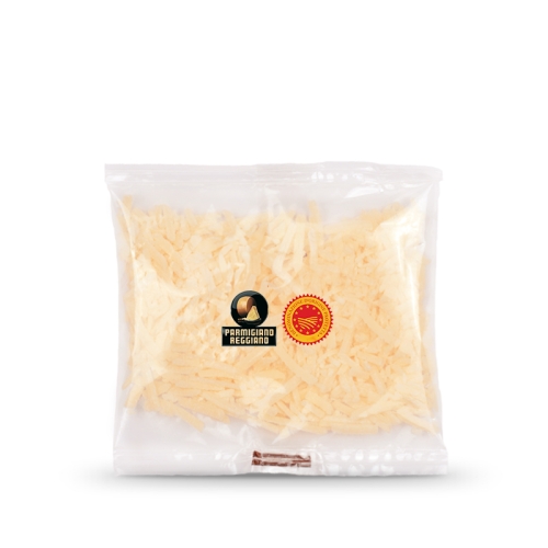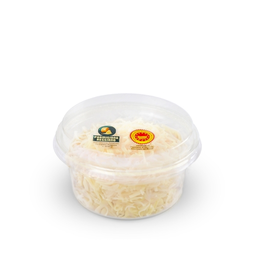 Due to its thin shape, the julienne cut allows the cheese to melt during cooking while remaining visible. Ideal as a topping for gourmet pizzas or fresh or frozen lasagna. Wonderful for sandwiches too. Available also cut as ‘Angel Hair’, a special very fine English-style julienne which is recommended for long-aged cheeses.